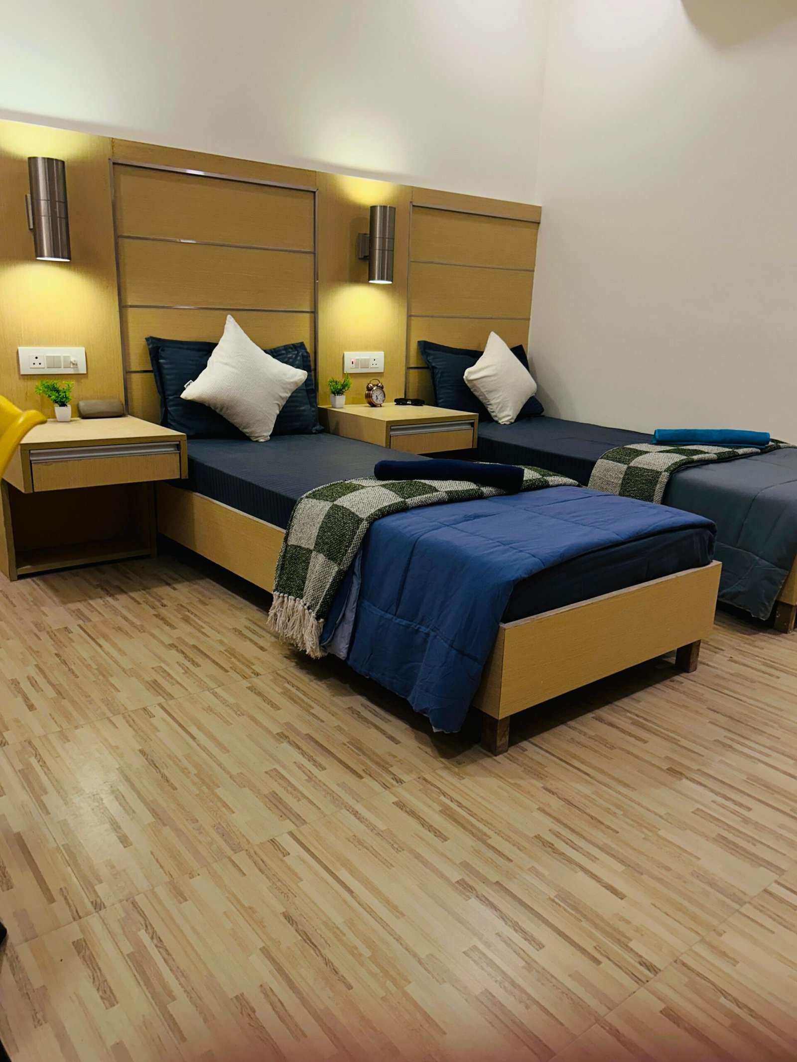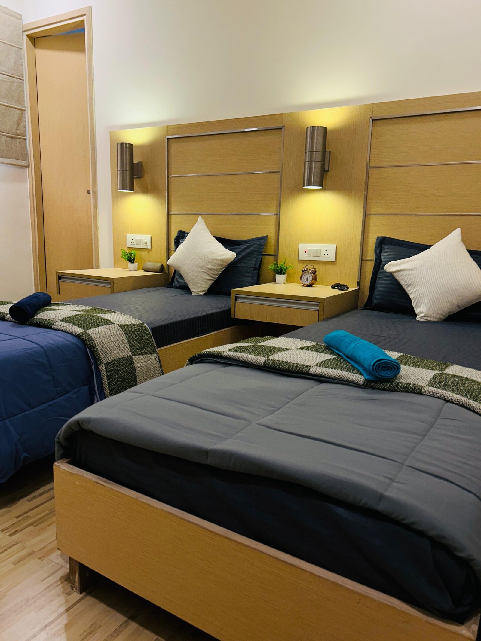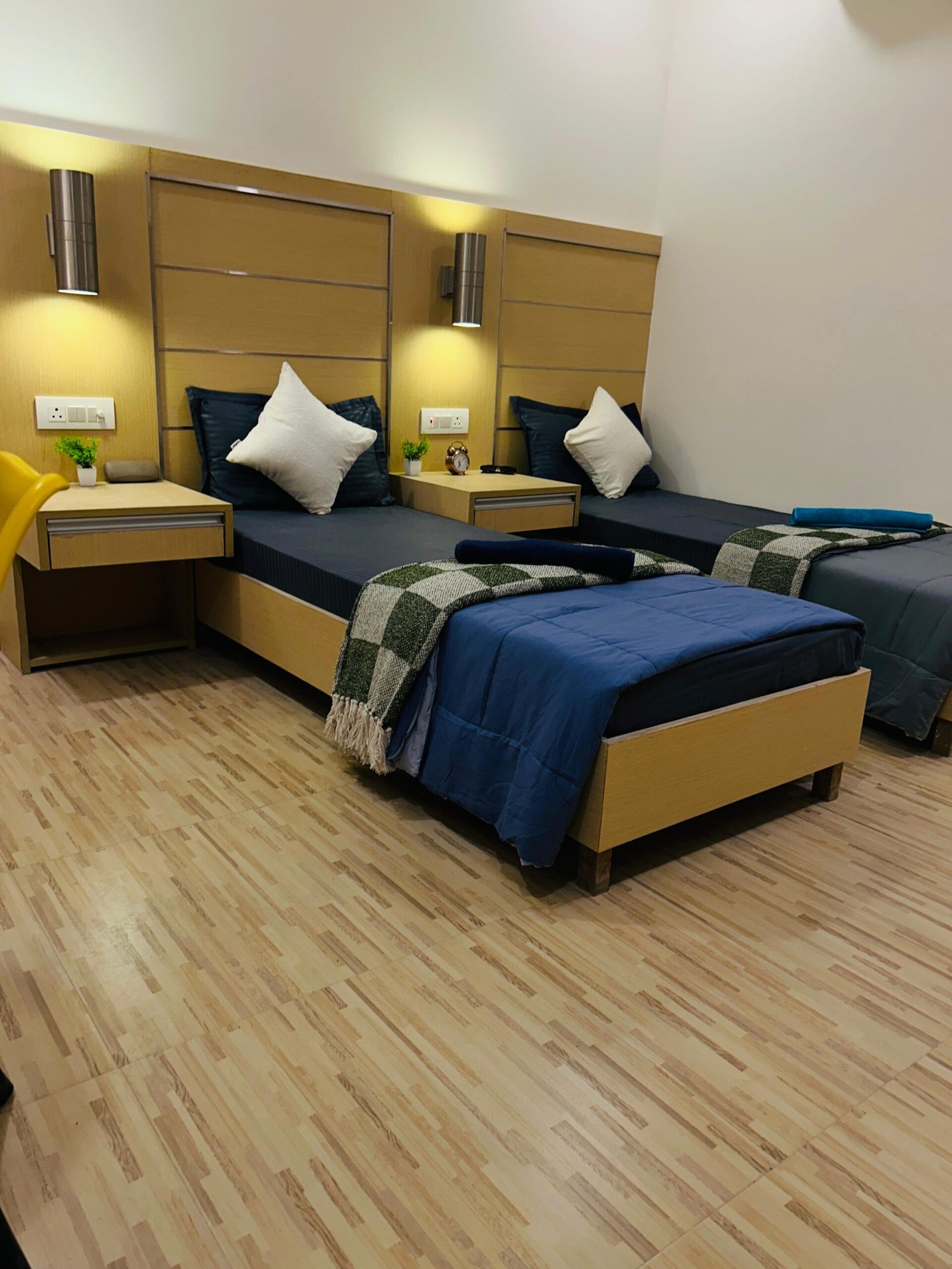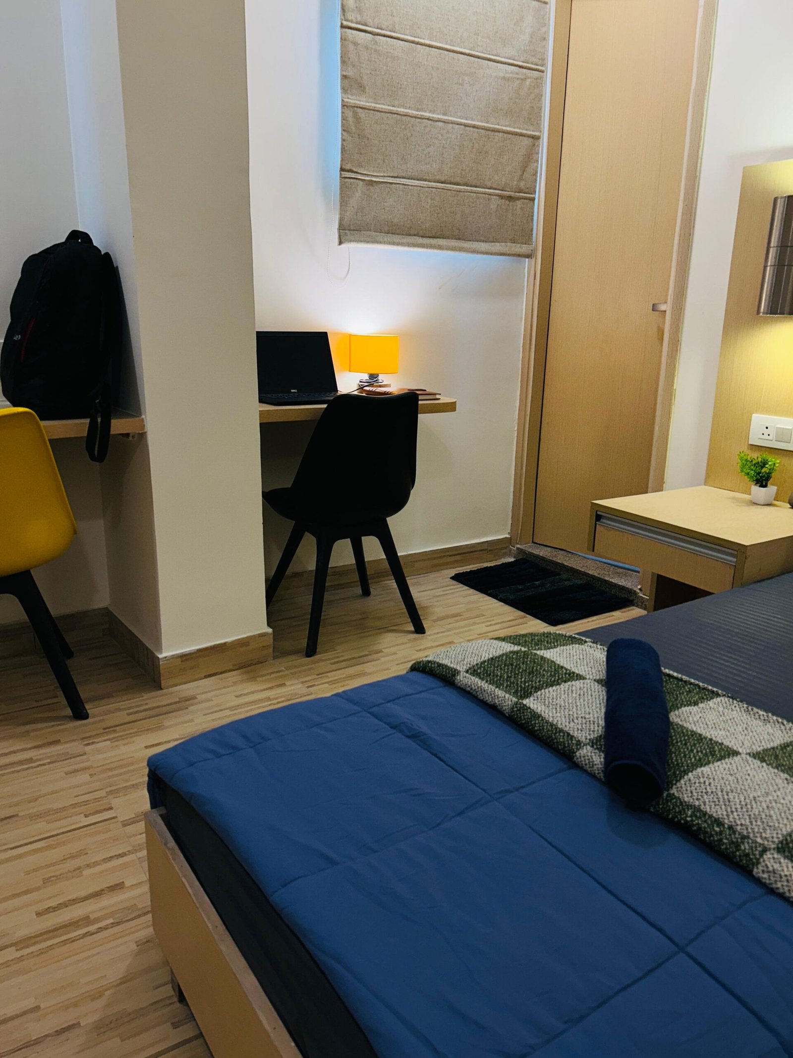 Comfortable beds, wardrobe & study setup